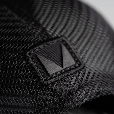 Logo emborrachada sobreposta ao boné com acabamento premium.