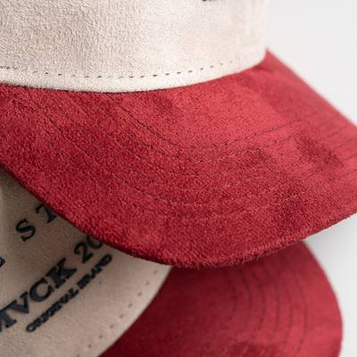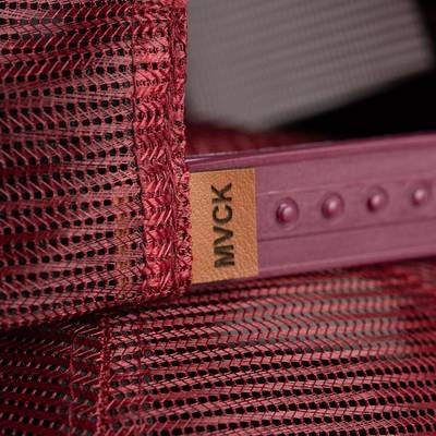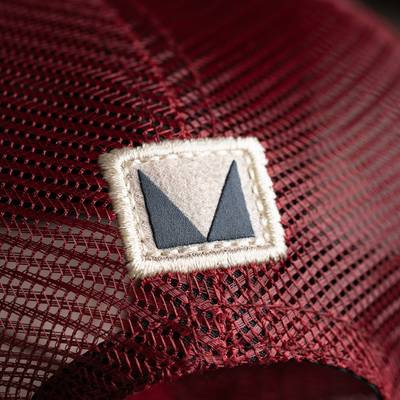 ✓ Boné Trucker Colorado Vinho e Bege Camurça MVCK, confeccionado em tecido camurça na parte frontal (aba e testa) e poliéster na tela.