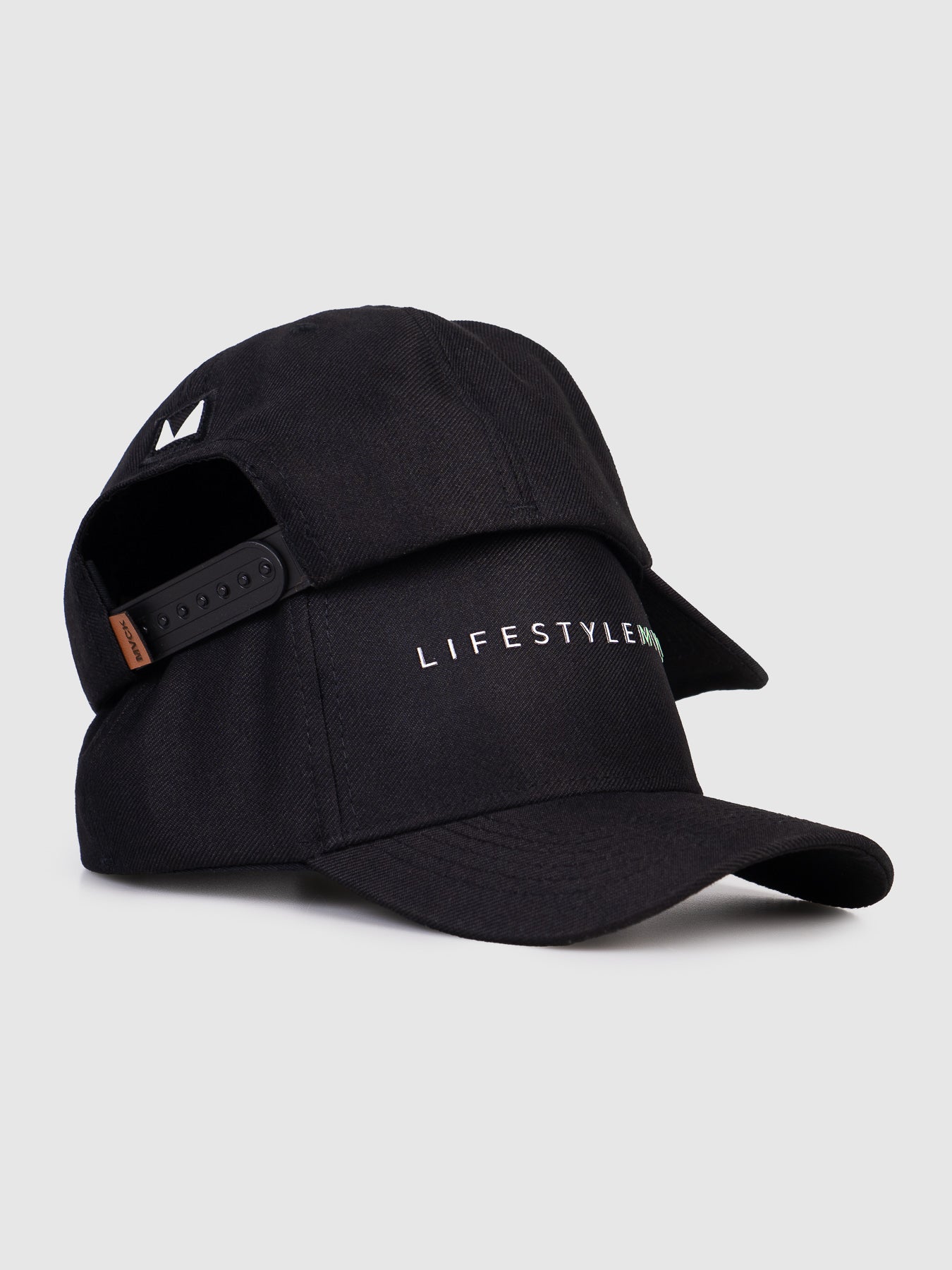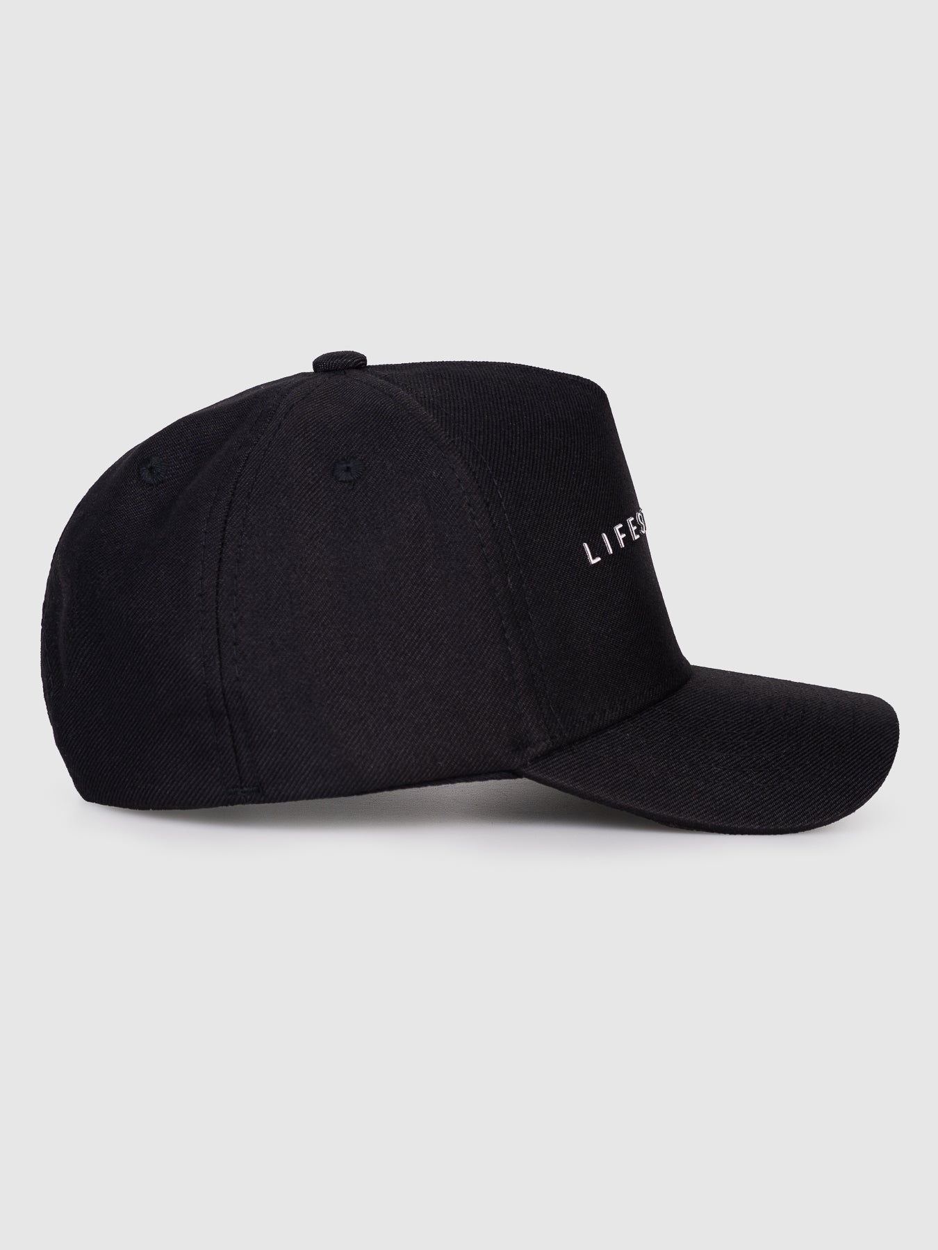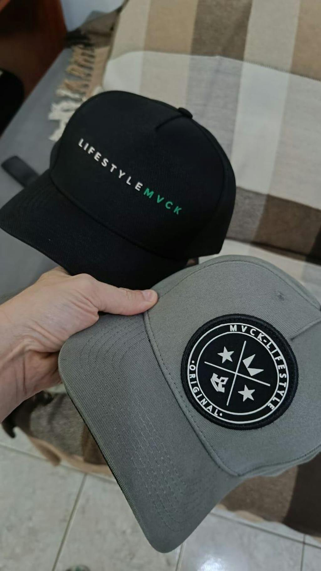 Logo emborrachada sobreposta ao boné com acabamento premium.