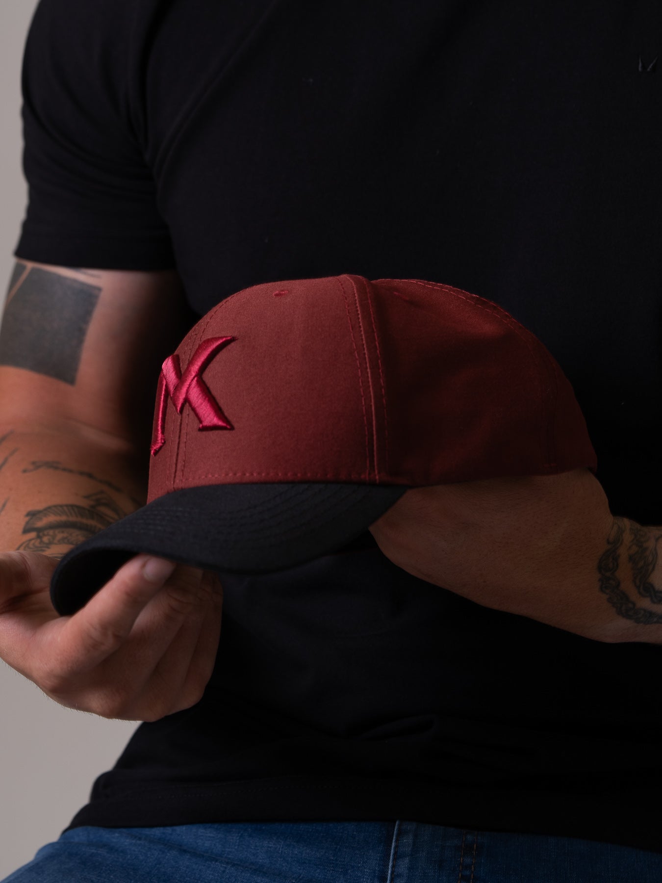 ✓Boné Polo Maverick Vinho Aba Preta MVCK, confeccionado em brim algodão.
