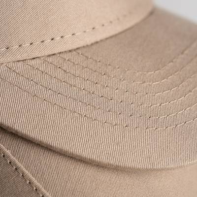 Logo emborrachada sobreposta ao boné com acabamento premium.