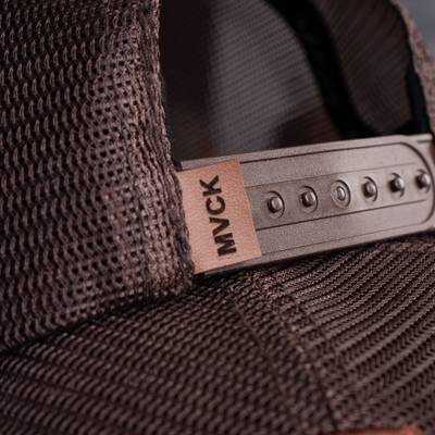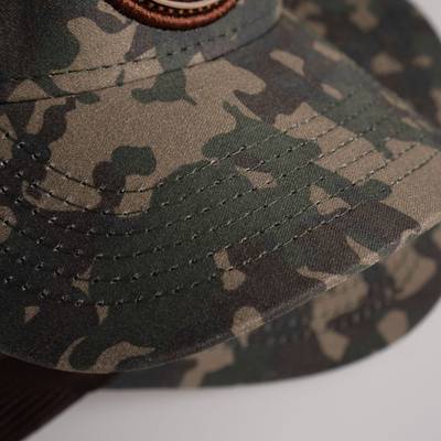 Logo emborrachada sobreposta ao boné com acabamento premium.