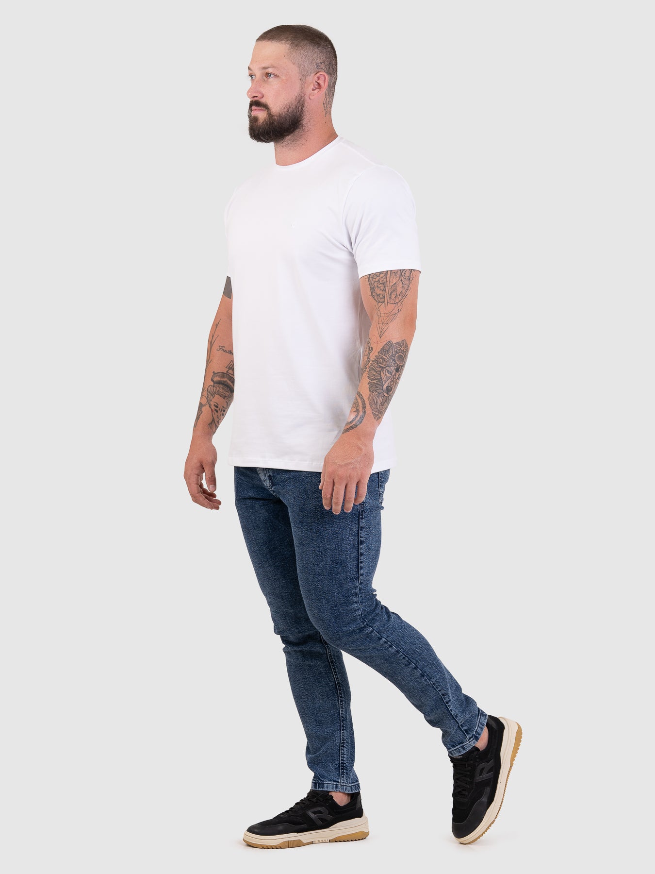 - 72% Algodão, 25% Poliéster e 3% Elastano.
