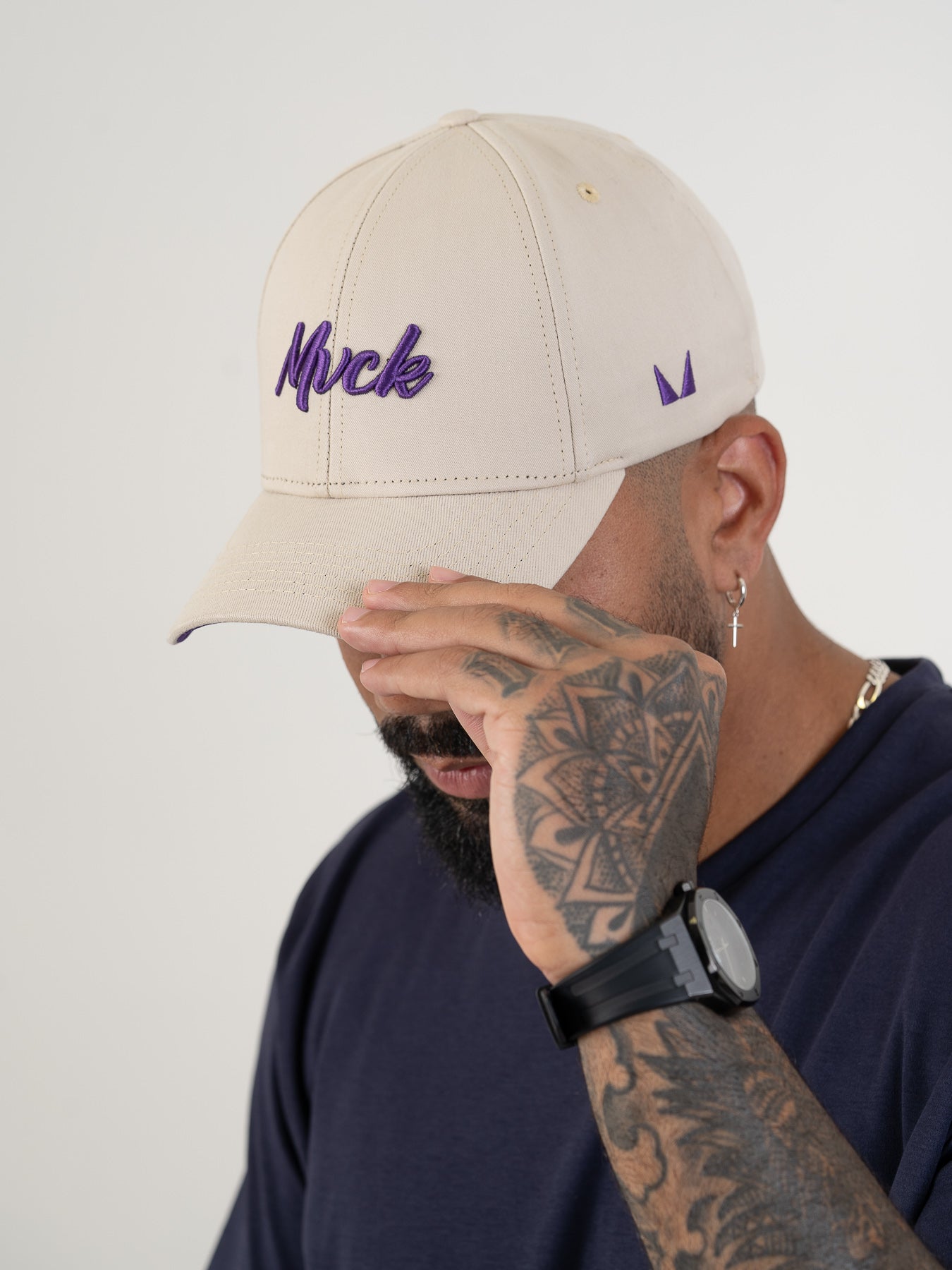 Boné Polo Classic Areia e Roxo MVCK, confeccionado em brim algodão.