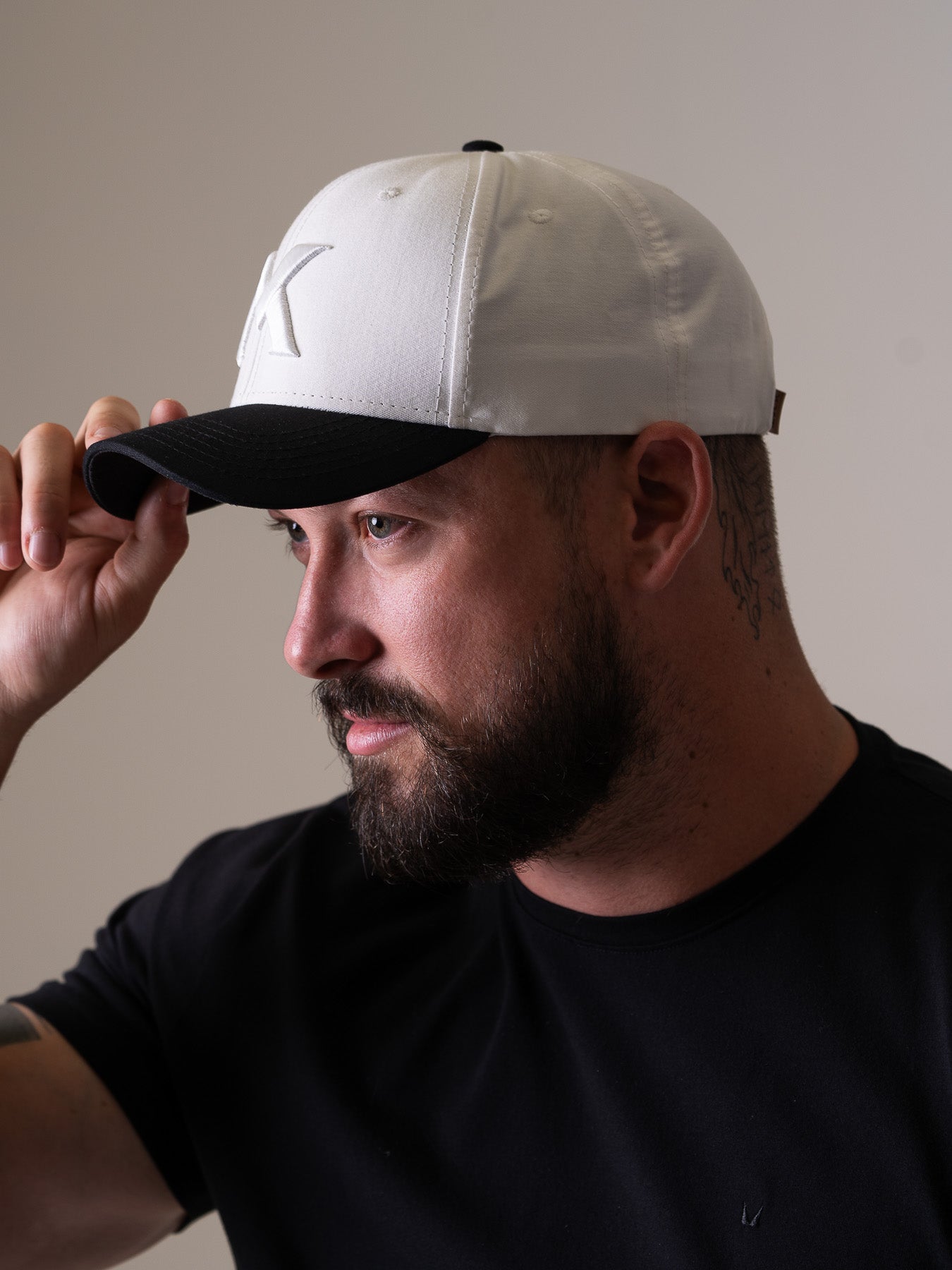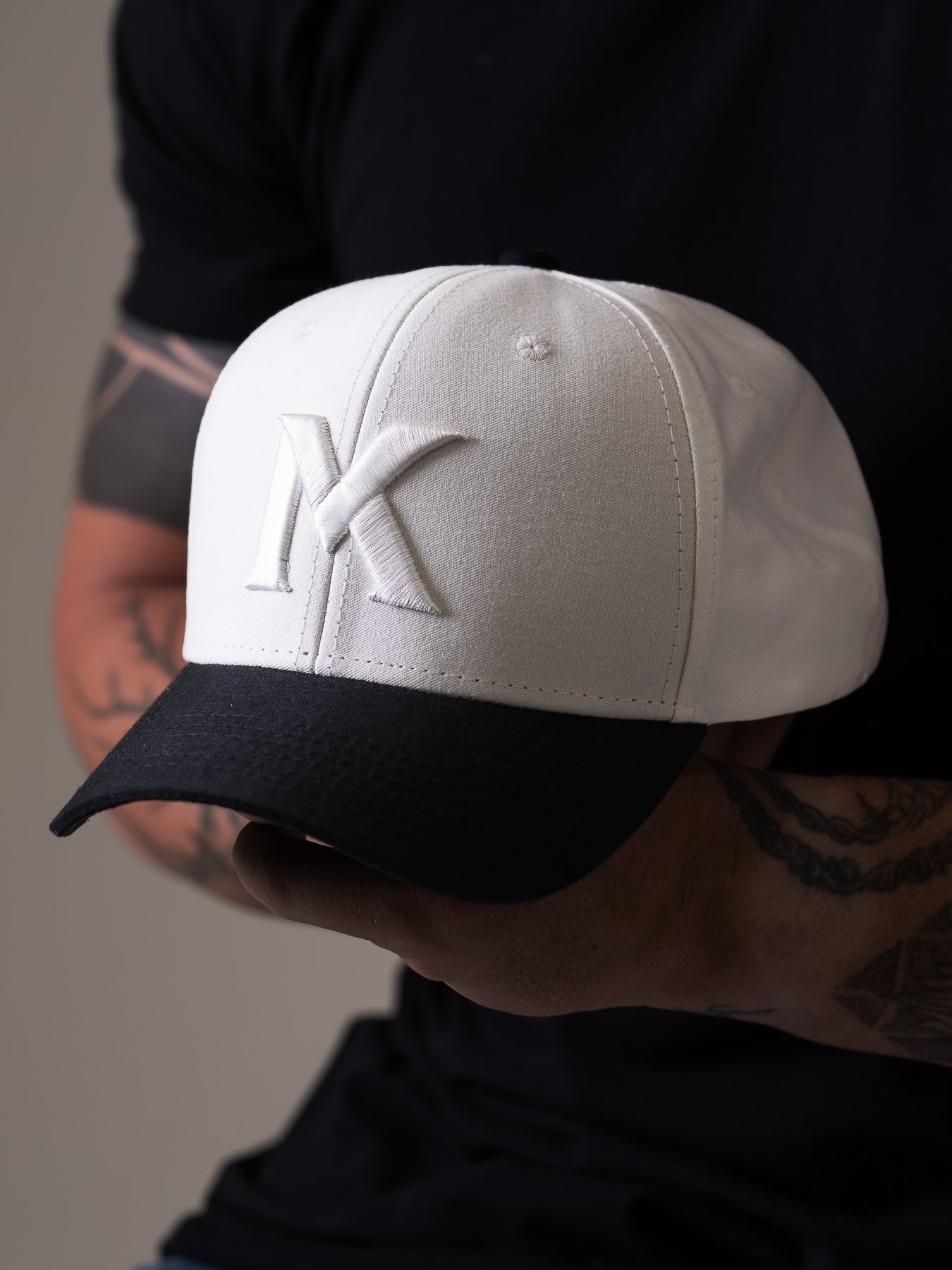 ✓Boné Polo Maverick Branco Aba Preta MVCK, confeccionado em brim algodão.