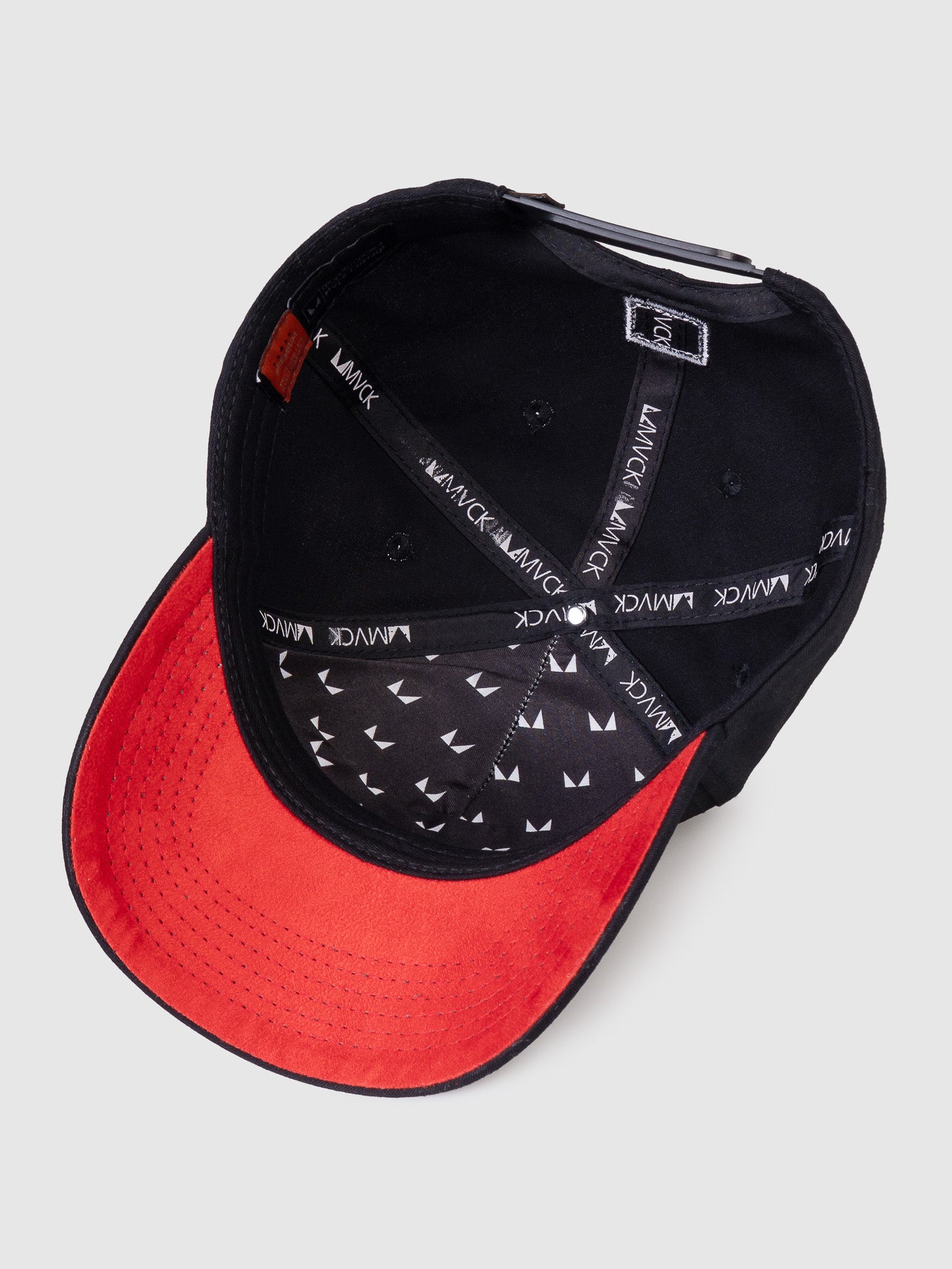 ✓Boné Polo Maverick Preto e Vermelho MVCK, confeccionado em brim algodão.