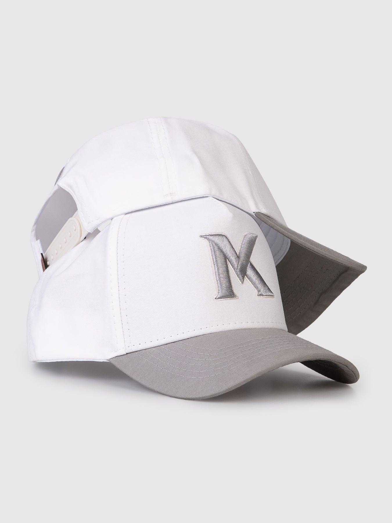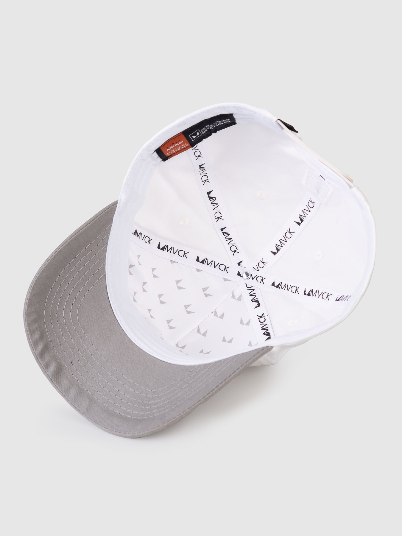 ✓Boné Trucker Maverick Seven Off White e Cinza MVCK, confeccionado em brim algodão.