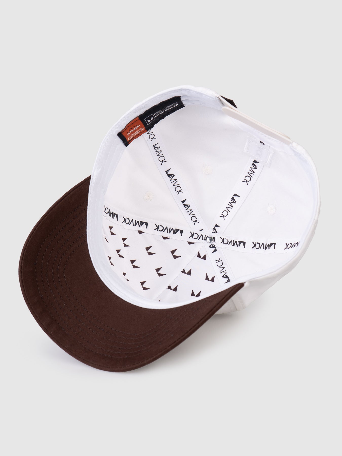 ✓Boné Trucker Maverick Seven Off White e Marrom MVCK, confeccionado em brim algodão.