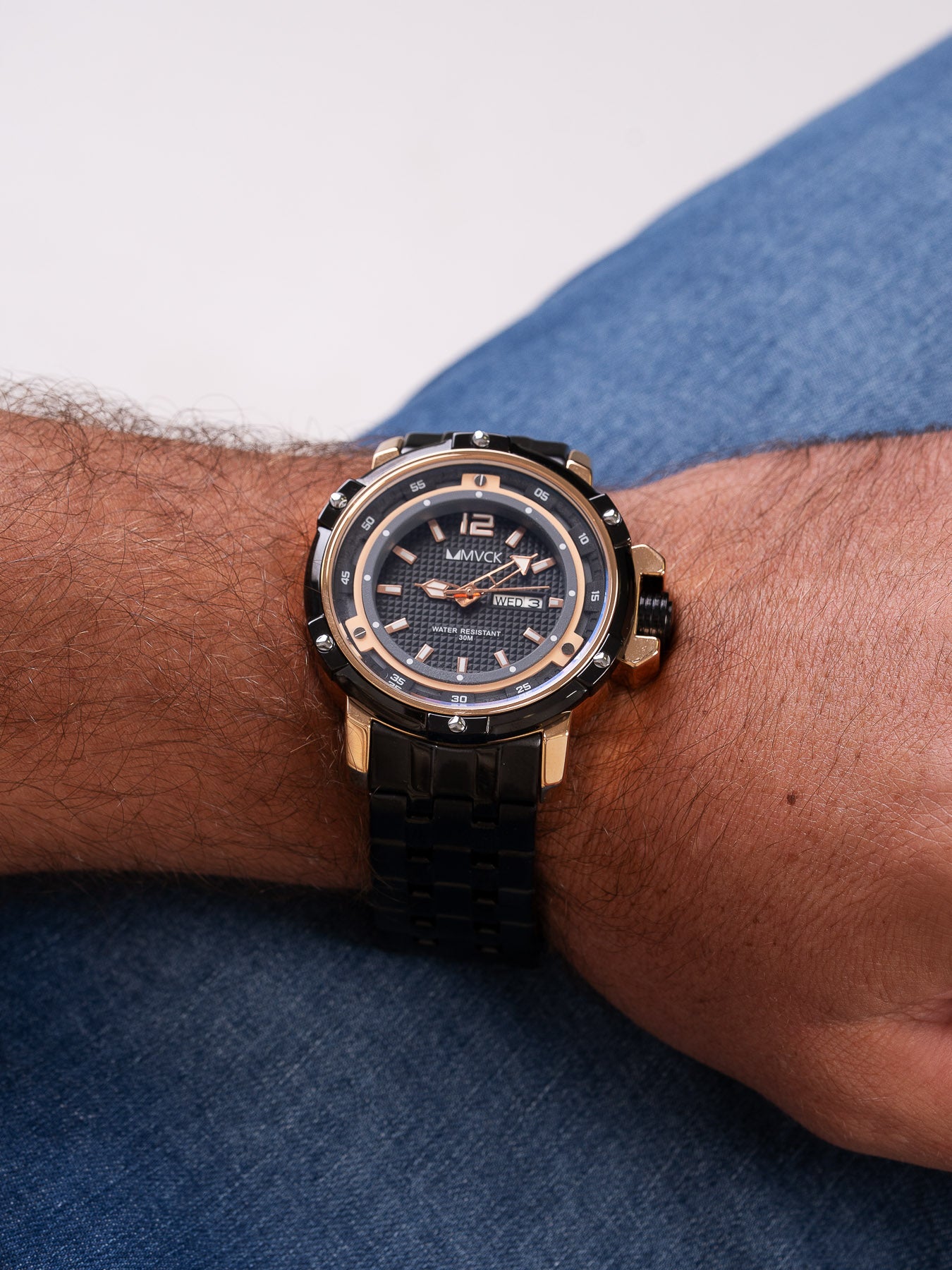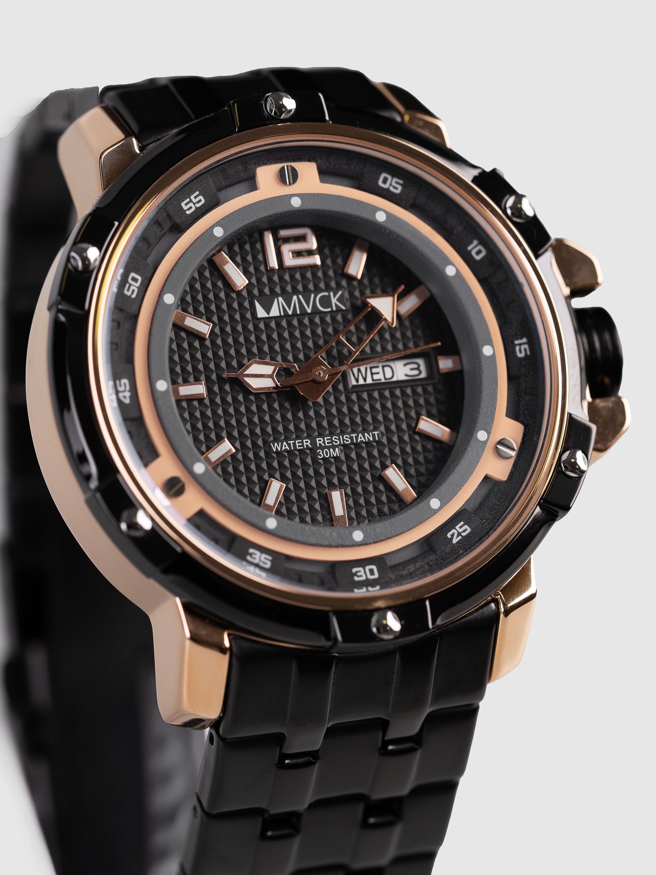 Material resistente, com uma leveza surpreendente devido ao aço inox, preservando o relógio de enferrujamento.